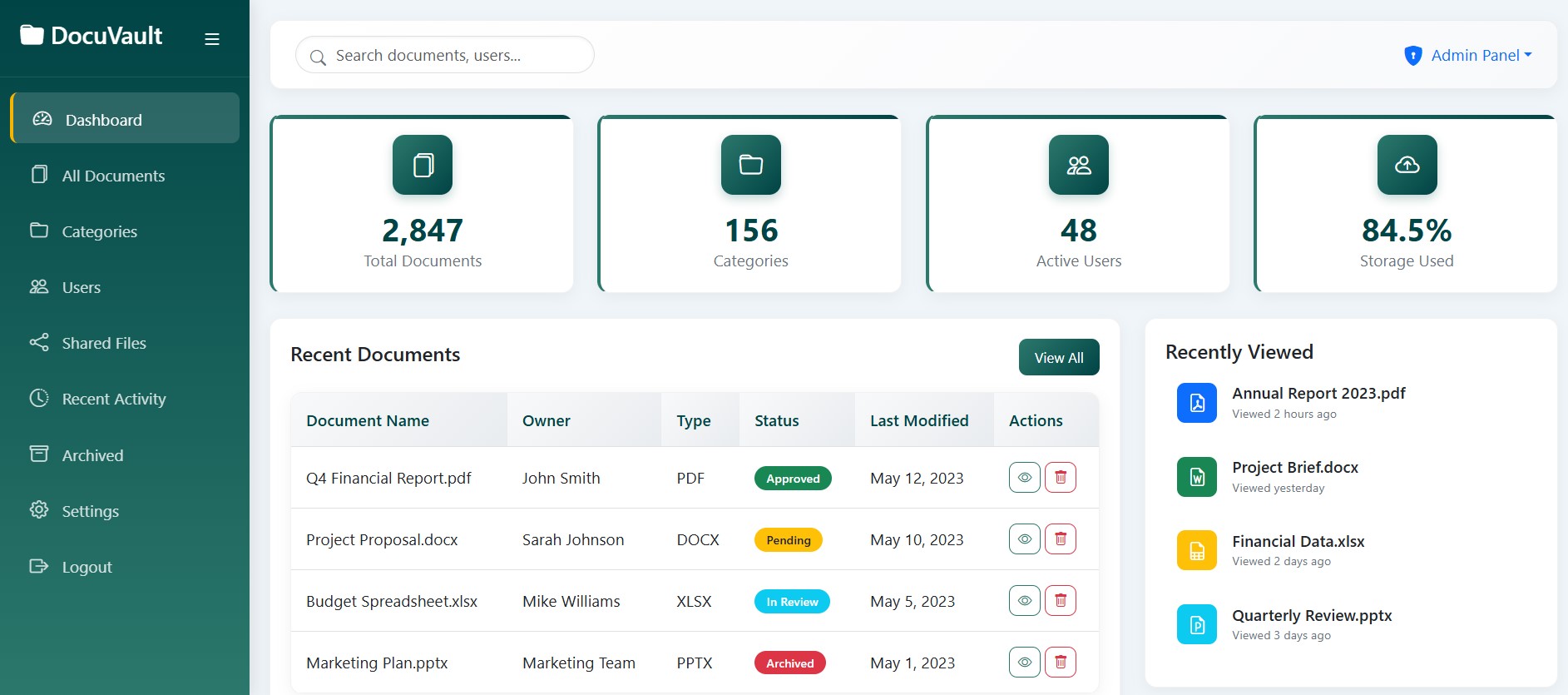 Used in: Corporate portals, legal firms & cloud storage systems.